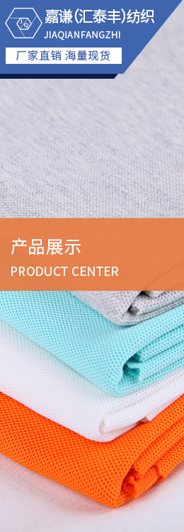 平紋布:各類拉架平紋、普通平紋、花式平紋,面料紋路清晰、光澤好,成分包括100C、100T、100N、T/C、CVC、N/C、N/T、MODAL、TENCEL、ROYAN、BAMBOO等,適宜合類休閑、運動、時尚、商務及內(nèi)衣類服飾.<br /> 珠地布:各類單雙珠、六角、斜紋珠地,珠眼飽滿、顆粒清晰,伸縮保形性好,吸濕、透氣,可兼做抗紫外、吸濕導汗、香味等功能,適宜各類休閑、商務、運動類T恤.<br /> 健康布:組織精密、紋路清晰、手感爽滑立挺,膚感強,適宜各類運動、休閑、時尚類服裝,成分包括100C、100T、T/C、CVC、C/R等.<br /> 衛(wèi)衣布:各類單、雙衛(wèi)衣,拉架衛(wèi)衣,布面肌理豐富,耳仔整齊,立體飽滿,有良好的吸濕透氣及保暖功能.<br /> 不倒絨:保暖、透氣,不起球、不掉毛,適宜合類休閑套裝,情侶、新套裝、保暖內(nèi)衣.<br /> 橫機面料:11、22及提花類,用于各類領(lǐng)袖及下欄配套.<br/>